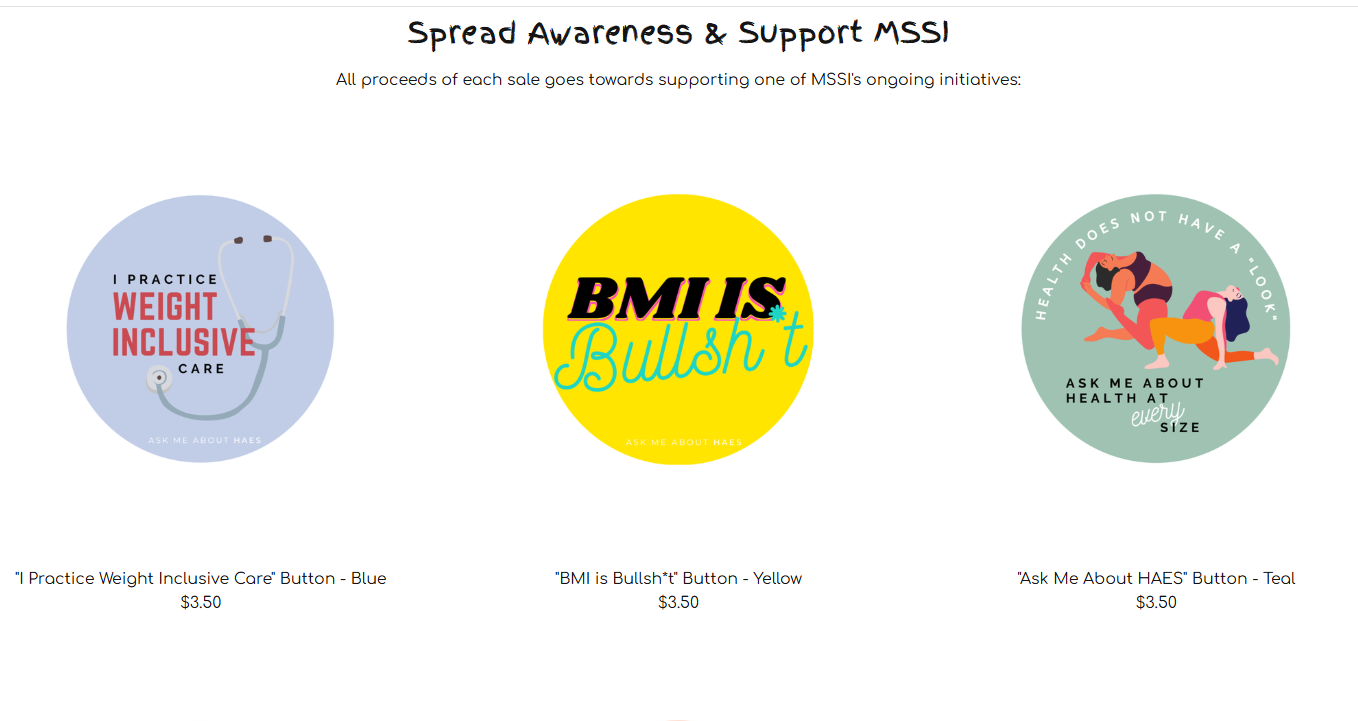 MSSI has begun to fundraise, starting with some size-inclusivity stickers! We hope to use our funds to further the initiatives we have started, including compensating MSSI speakers for their time and effort & purchasing size inclusive equipment for local clinics.